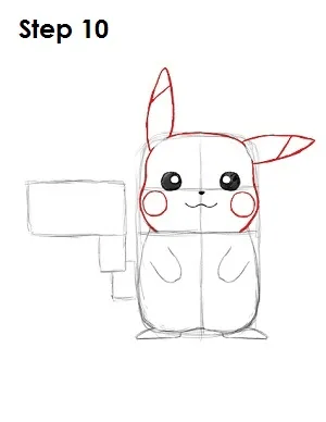 Use thin lines to draw all the details that you see in this step as pikachu face drawing.